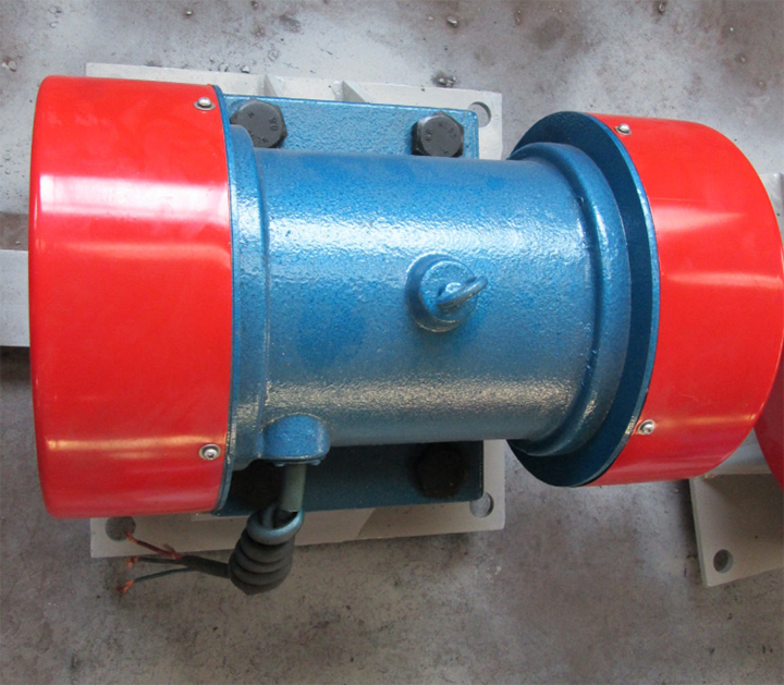 料倉防閉塞振動電機(jī)的內(nèi)部裝有偏心塊,當(dāng)電機(jī)高速旋轉(zhuǎn)時,偏心塊產(chǎn)生離心力,這個離心力在特定方向上的分力無法被完全平衡,從而轉(zhuǎn)化為周期性的、定向的激振力。該激振力通過電機(jī)底座或法蘭直接傳遞給料倉壁體,引起倉壁產(chǎn)生局部或整體的彈性微幅振動。這種振動能破壞物料顆粒間的“拱橋”結(jié)構(gòu)和靜態(tài)摩擦,降低物料與倉壁之間的吸附力和阻力,從而使物料松散從而不會閉塞。