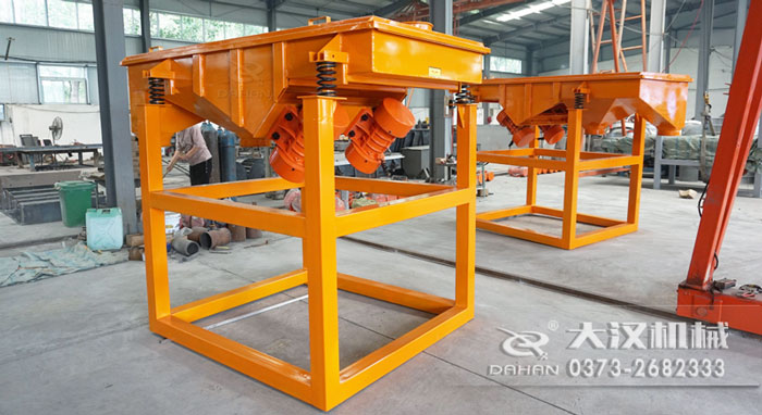 DZSF系列鋸末直線篩為雙振動電機驅動。當兩臺振動電機做同步、反向旋轉時,其偏心塊所產生的激振力在平行于電機軸線的方向相互抵消,在垂直于電機軸的方向疊為一合力,因此篩機的運動軌跡為一直線。兩電機軸相對篩面在垂直方向有一傾角,在激振力和物料自重力的合力作用下,物料在篩面上被拋起跳躍或向前作直線運動,從而達到對物料進行篩選和分級的目的。適用于粒度在0.074—5mm,含水量小于7%,無粘性的各種干式粉狀或顆粒狀物料的篩分。大給料粒度不大于10mm.。